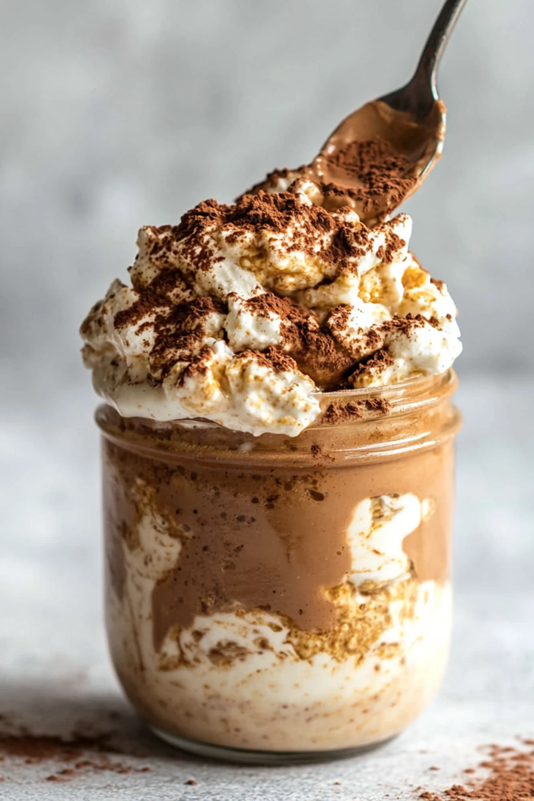 Tento recept přebírá vše, co milujete na tiramisu – espresso, kakao, krémové vrstvy – a přetváří to do výživné snídaně. Místo piškotů použijete ovesné vločky a chia semínka pro postupné uvolňování energie a extra vlákninu. „Krém“ pochází z proteinového skyr (nebo řeckého jogurtu či rostlinných alternativ), jemně oslazený a ochucený kapkou rumového extraktu pro autentičnost. A ano, stále obsahuje espresso, protože rána si zaslouží malé povzbuzení.